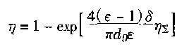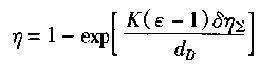 2.當(dāng)過濾器內(nèi)所填充的為與圓柱形纖維捕塵體時(shí),纖維層過濾除塵器的除塵效率與單一纖維捕塵體的綜合捕塵效率關(guān)系式為: