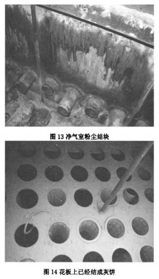 由于“四管爆裂”現象,導致水分進入除塵器,造成濾袋表面結露、糊袋現象。