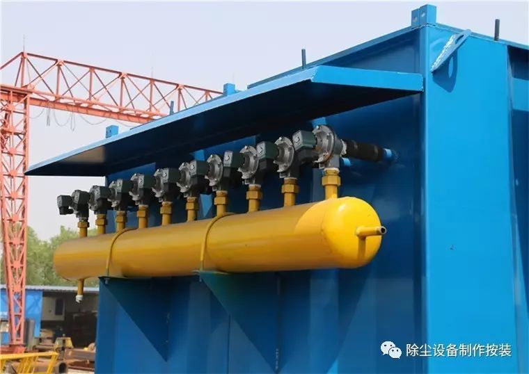 噴吹系統是為了電磁脈沖閥提供脈沖清灰氣源的設置。集氣箱的安裝必須準確無誤,集氣箱是有方向的,其短接管必須與穿壁連接器相應對齊;電磁脈沖閥進氣端與集氣箱上的短接管相連,出氣端與穿壁連接器通過短管(橡膠軟管)、彎頭相連;鉆有與濾袋數相同噴孔的噴吹噴管與彎管相連。因裝濾袋后在凈氣室內不能再燒焊,所以噴吹管必須要預組裝來固定支架的位置。